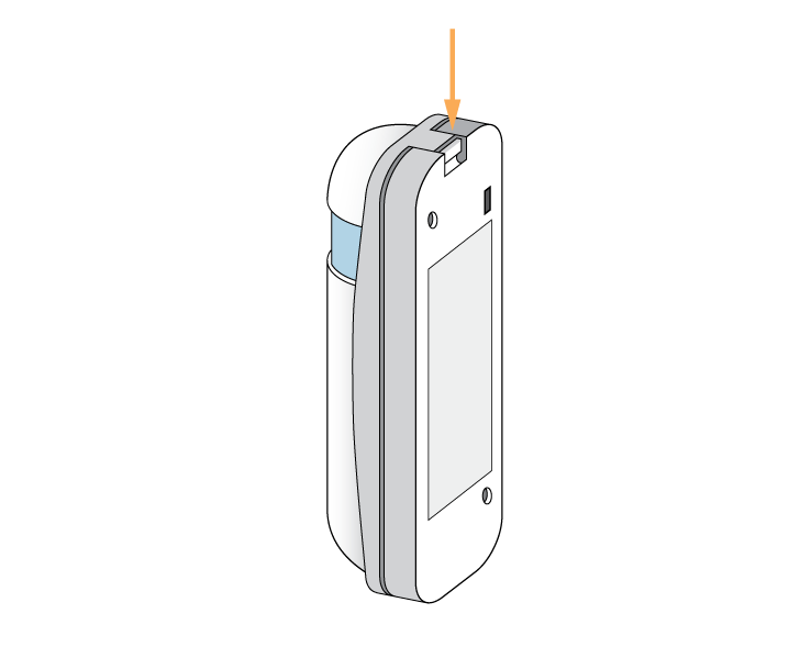 Remove the front cover of the Wireless Room Sensor by placing a tool (such as a flat-bladed screwdriver) into the top of the sensor until you hear a click. This will release the catch. Use your nails or the screwdriver to pull the white (front) of the room sensor away from the clear (back) and allow the cover to swing down (be careful not to pull the sensor off the wall). The front is hinged at the bottom.