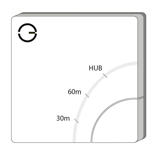 Please note, that the Hub should not be placed next to anything that may block the radio signal (i.e. behind a TV, inside a network cabinet, etc.). The Hub should be placed 1m away from any other electronic device.