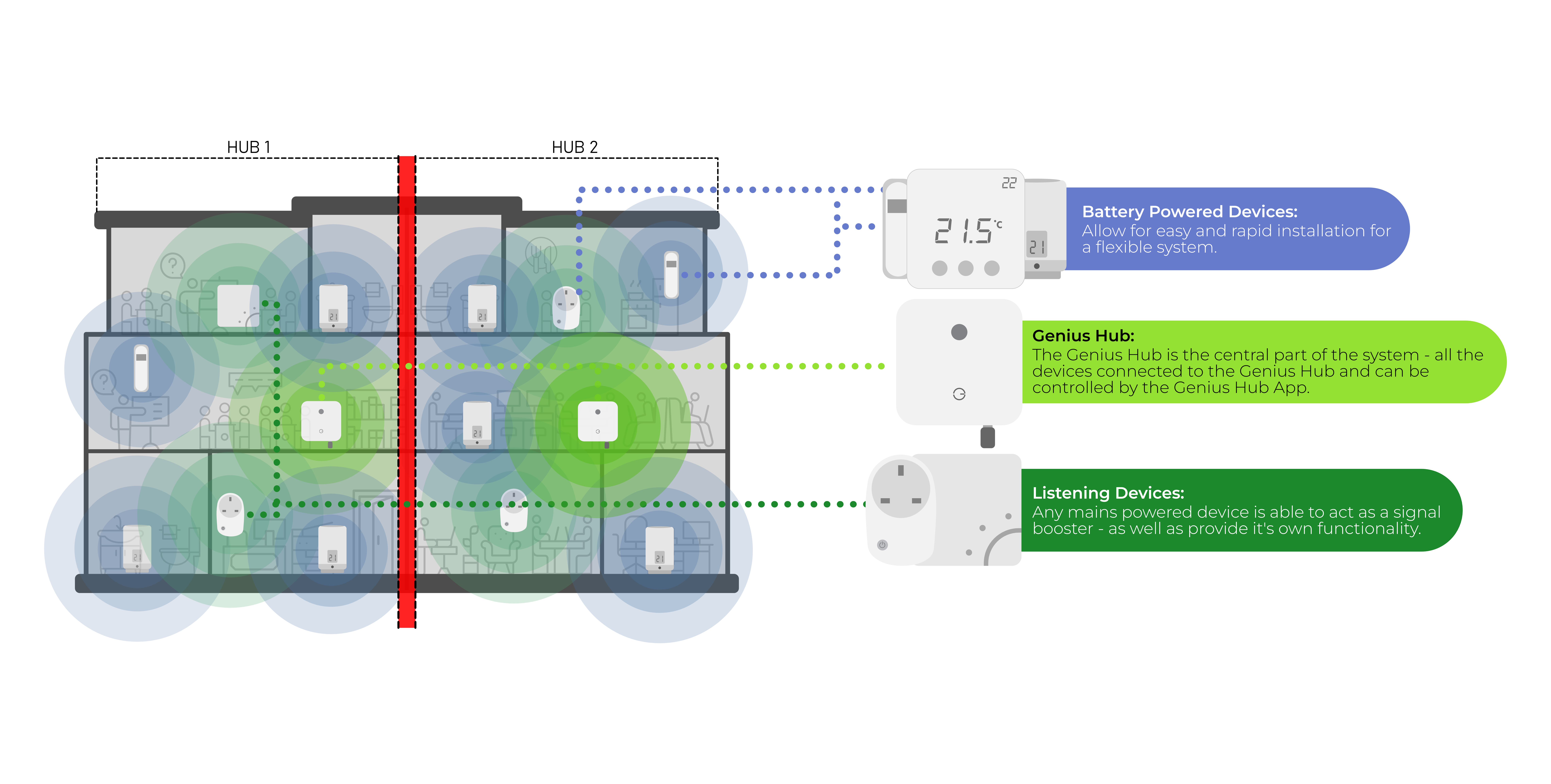 Positioning Multiple Genius Hubs on larger properties: