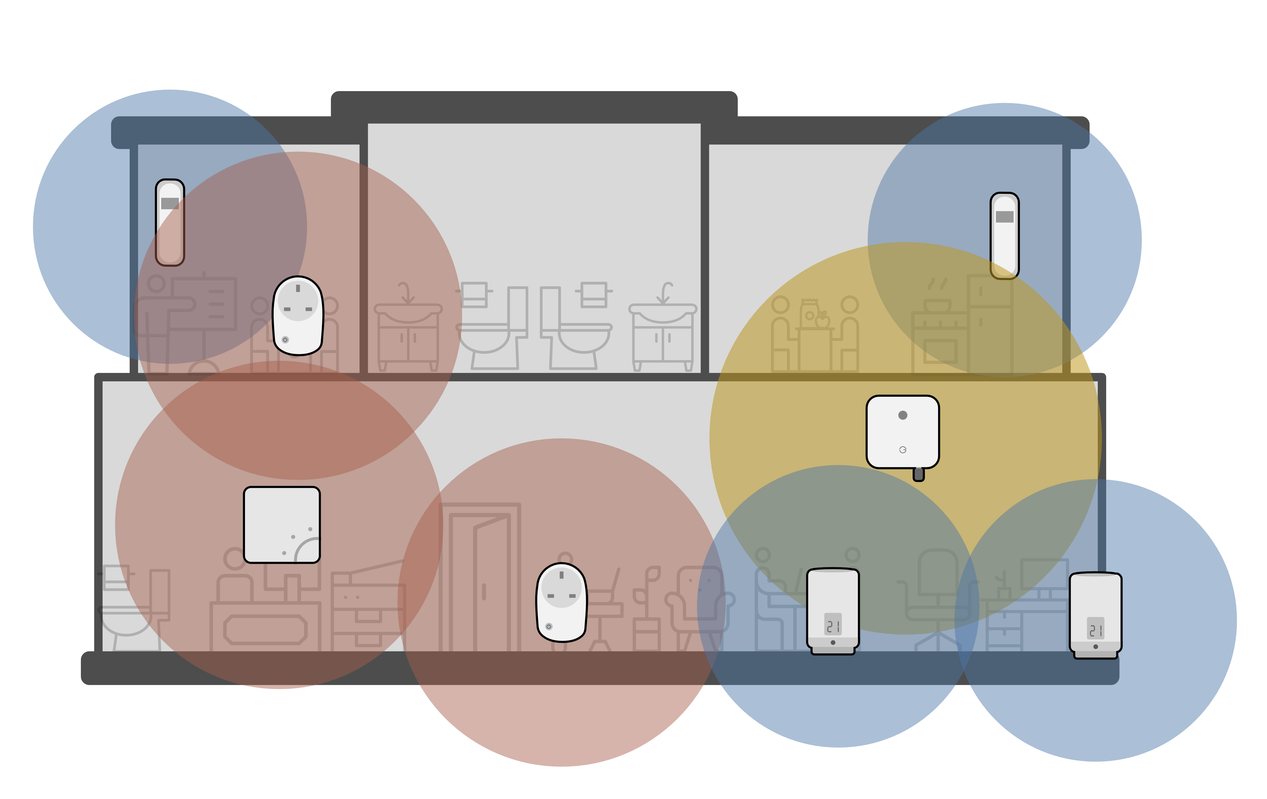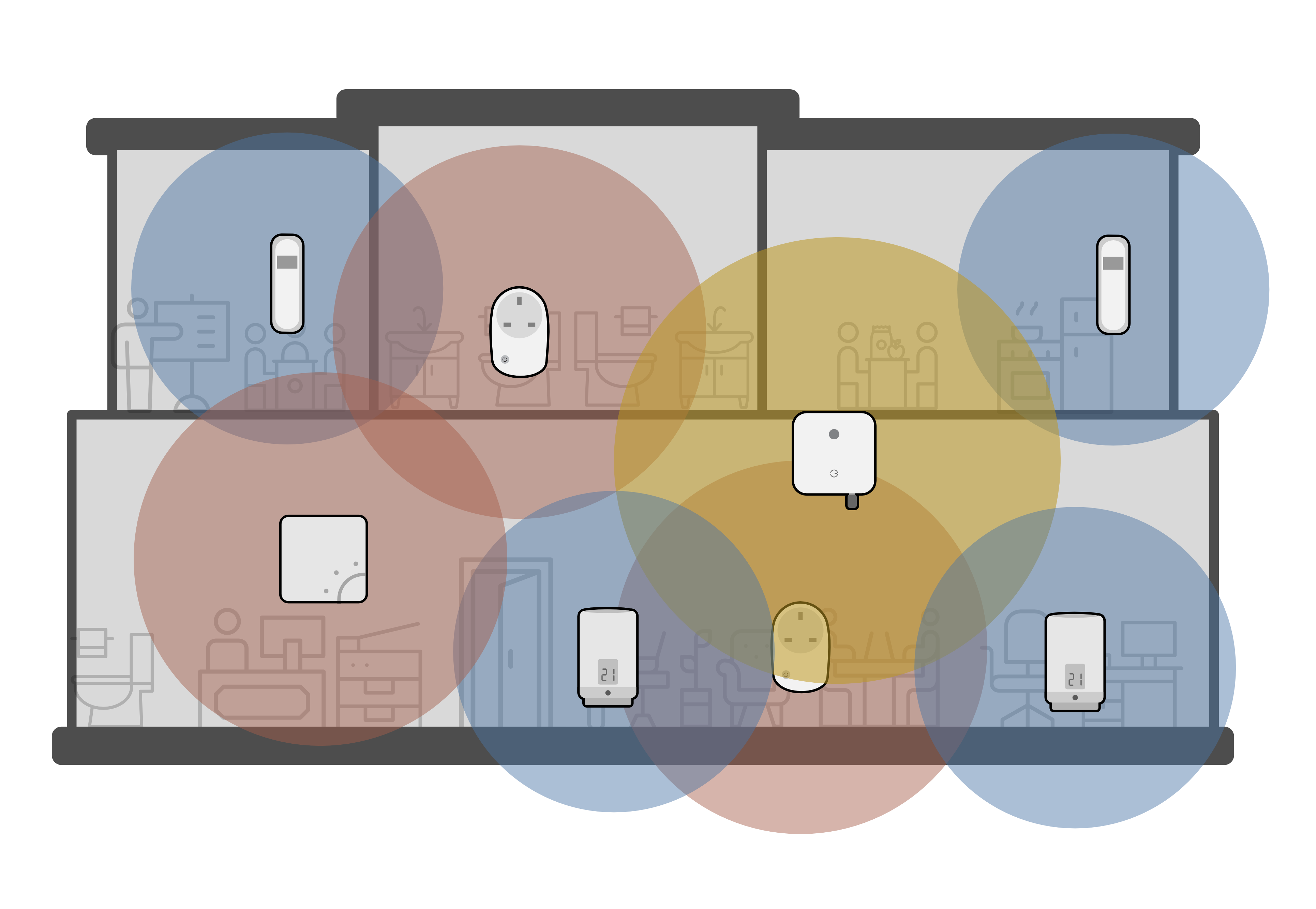 - Place one in the rooms above or below the Genius Hub if possible. The signal easily travels through floors and ceilings and this will give many good 'strong' connections back to the Genius Hub.